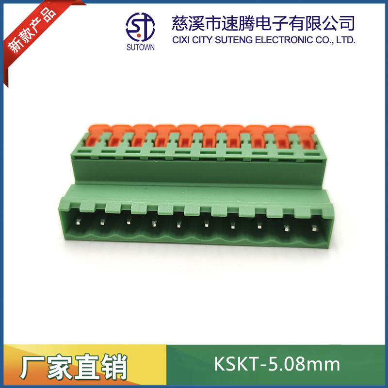 型號:KSKT-5.08mm間距:5.08mm極數:2-24P電氣性能 額定電壓:300V額定電流:15A使用線徑:24-12WG(2.5mm2)環境溫度:-40℃~+105℃瞬時溫度:+250℃,5s耐電壓:AC4000V/Min接觸電阻:20MΩ絕緣電阻:5000MΩ/1000V扭矩:0.4Nm剝線長度:7-8mm材質和電鍍 塑件:PA66,UL94V-0觸點材料:磷青銅,鍍鎳